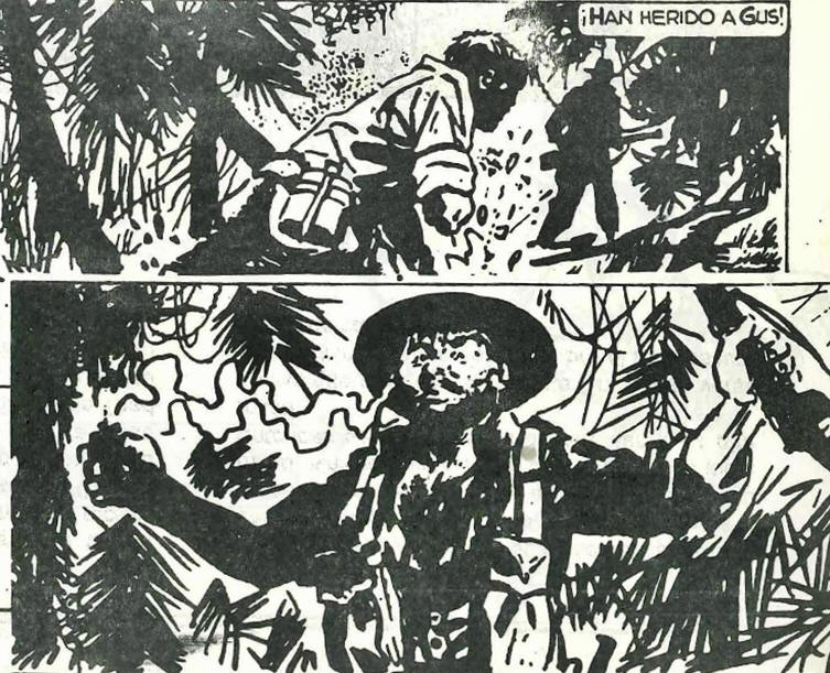En Wheeling (1962), su primera gran historieta integral, Pratt retoma el tema de las luchas coloniales. La primera página de la serie está ocupada por un mapa histórico de la región donde ocurren los hechos, la frontera canadiense-norteamericana; en una edición española (Nueva Frontera, 1981), se agregan un prólogo y una cronología. La inserción de estas notas es, a partir de entonces, característica de Pratt. Así ofrece datos para el contexto histórico y ambiental de la aventura. El protagonista de Wheeling es Criss Kenton, un joven soldado americano. Con ello persiste la pauta de Ann y Dan (1959), historia dedos adolescentes en el África colonial. La idea de aventura -Pratt la entiende como "lo que ha de venir, la búsqueda de algo diferente”- se ajusta con precisión a este tipo de personaje. Para un adolescente, toda experiencia es iniciática; el joven Criss conocerá el asombro y el espanto cuando mate por primera vez. Sin embargo, lo acompañan muchos personajes: personajes imaginarios, históricos (el explorador Daniel Boone) y legendarios (el cazador de indios Lou Wetzel). |