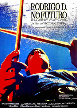 Rodrigo D. No futuro[3] y un concepto de Bertolucci Bernardo Bertolucci vio Rodrigo D. cuando era presidente del jurado en el Festival de Cannes de 1990. «Tiene la fuerza y la belleza de una película de Rossellini», proclamó el director italiano. Gaviria se sintió muy elogiado con semejante comparación puesto que para él Rossellini es el maestro del cine no comercial, de un cine que no se sabe si es documental o no, de un cine que integra no solamente la imagen sino toda la persona, es decir, del cine como una búsqueda del sentido humanista. En Rodrigo D.No futuro hay tanta verdad que impide saber donde comienza la realidad y donde termina la ficción. Hombre citadino, Gaviria se enfrenta con los más graves problemas urbanos e intenta redimirlos con el arte, trata de ver a las personas en el tiempo «aunque su presente sea un problema oscuro sin solución». El desempleo, la falta de oportunidades que conducen al desespero, son algunos de ellos, problemáticas que trata a profundidad en su mencionado primer largometraje. La historia partió de una crónica publicada en el periódico El Mundo, en octubre de 1984: un joven intentó suicidarse desde el último piso de un edificio céntrico de la ciudad. Rodrigo Alonso era un muchacho no mayor de veintiún años, un ser marginal y solitario, tirado a la calle para errar sin rumbo y sin empleo como tantos otros. |