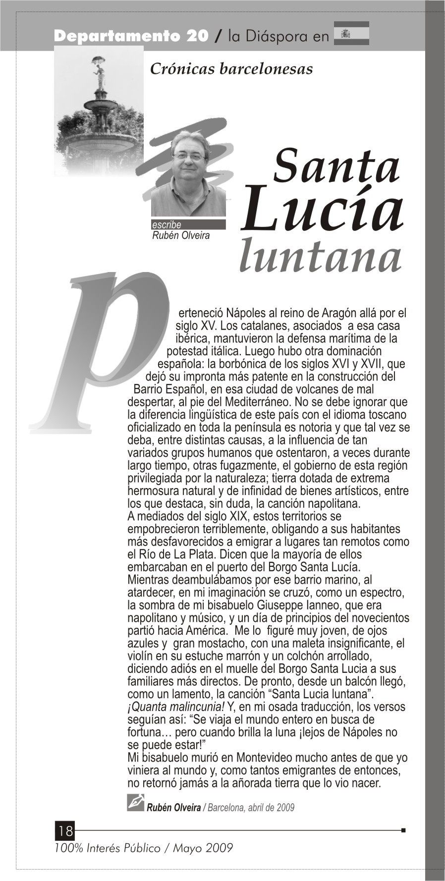 brilla la luna ¡lejos de Nápoles no se puede estar!” Mi bisabuelo murió en Montevideo mucho antes de que yo viniera al mundo y, como tantos emigrantes de entonces, no retornó jamás a la añorada tierra que lo vio nacer. |
