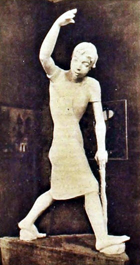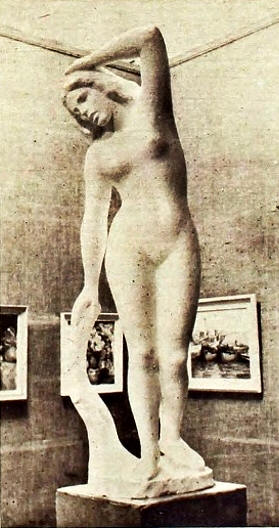 El Premio retrato de Larrarte, buscada la figura en masas que en el cabello emplea en amplia síntesis, se sustrae más pronunciadamente a la escultura rígida que estilaba, para imponer un sello sensible en la expresión. “Cabeza de Joven", de Fernández Tuduri, representa al escultor embarcado desde un tiempo en una obra un poco reducida, si tenemos en cuenta los pasados envíos de hace años. Dueño de un simple concepto que se aviene a sus dotes de intérprete de la figura, tratando temas populares, donde los niños llegaban, por su modelado, a tener una graciosa vida, su obra presente no traduce aquella vital y espontánea expresión de emotivo acento. La figura entera se halla más cercana a su ideario, y cobra especial sentido en su actitud. Un conjunto de volúmenes la “Maternidad” de Barra. Talla, directa a la piedra, marca un esfuerzo en hallar los materiales nobles que se presten a la herramienta que logre mejor traducirlo. Panosetti es otro escultor que con un grupo “Fuente”, ha arriesgado un paso más en la composición. Siempre dentro del respeto a las formas. Creemos que su busto de mujer — talla—, es una de sus piezas más felices. Un tema difícil ha sido abordado por Alves. Es una figura de cuerpo entero, “Bailarina”. Estilizada y empleando bien la pátina en el material, ha sacado partido, dejando el sentido táctil del modelado. Podrá en nuevas obras, encarar más definitivamente la faz expresiva, aun cuando en ésta la ha logrado en buena parte. Otras obras se exponen, que iremos comentando, algunas de ellas dentro del concepto abstracto puro, las que se limitan a sugerir en rasgos que no abarcan la expresión de las formas totales de la escultura, sino un significado simbólico de la idea. |