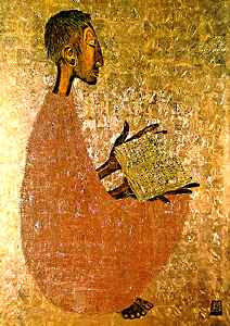 halló un lugar ideal para trabajar. Existe una sincronizada estilización en los personajes, a los que adapta dentro de sus especiales formas a una manera sugestiva, que se acompaña de elementos a una composición generalmente sin trabas y lejos de una rítmica cerradamente geométrica. Sin embargo, hay un orden determinado por líneas curvas generalmente, y líneas auxiliares, que conforman el detalle o el adorno animando, las vestimentas, o loa fondos, que muchas veces incluyen elementos del lugar. “Las formas más conocidas y familiares nos permiten estimar e| valor de nuestra búsqueda artística. Es por ello que prefiero la pintura figurativa", repite Boust, y aunque dé a sus personajes una elástica visión natural, éstos nunca se apartan de la realidad en su ubicación, pero como todo pintor que busca la evasión hacia el ideal formado, cobran, al llevarlas al lienzo, una vida espiritual que se ayuda con el colorido, rico en ligeros matices o simple y en pocas tintas, pero siempre expresivo. |