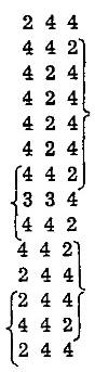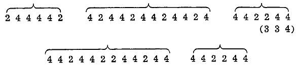 Al estudiar los timbres vimos que un mismo grupo a e abría y cerraba los cuartetos; en este caso es el soneto que se abre y se cierra por versos de igual acentuación. Otras coincidencias más notorias con el análisis tímbrico consisten en que hay una serie autónoma de los versos que están entre el primero y el octavo; en que también el primer verso, que en el esquema anterior queda aislado, entra en otro juego simétrico, como se verá al desarrollar la serie completa de fonemas. También se nota aquí la irregularidad que representa el octavo verso —3 3 4— que está aislado en un poema hecho todo de fonemas de sílabas pares. Si en vez de ese 3 3 4 algo molesto —aunque indudablemente atractivo—, hubiera habido un 2 4 4, la simetría tónica de los versos sería completa y el poema saldría ganando... o no. Eso no puede conjeturarse. Es ingenuo creer que en materia tan librada a la intuición y al oído como la forma poética no haya errores de estructura, versos perfectibles, pero el soneto está allí y no se acostumbra a meter mano en la obra de los poetas como en la de los músicos. Sólo desde un punto de vista casi exclusivamente matemático podemos permitirnos sentir nostalgia por ese 2 4 4. El 3 3 4 volverá a perturbar el acuerdo general cuando planteemos la serie de fonemas. Sustituyéndolo por el 2 4 4 obtenemos un esquema ideal donde la armonía, la hermosa proporción entre las partes no se ven retaceadas y donde el equilibrio es notable.